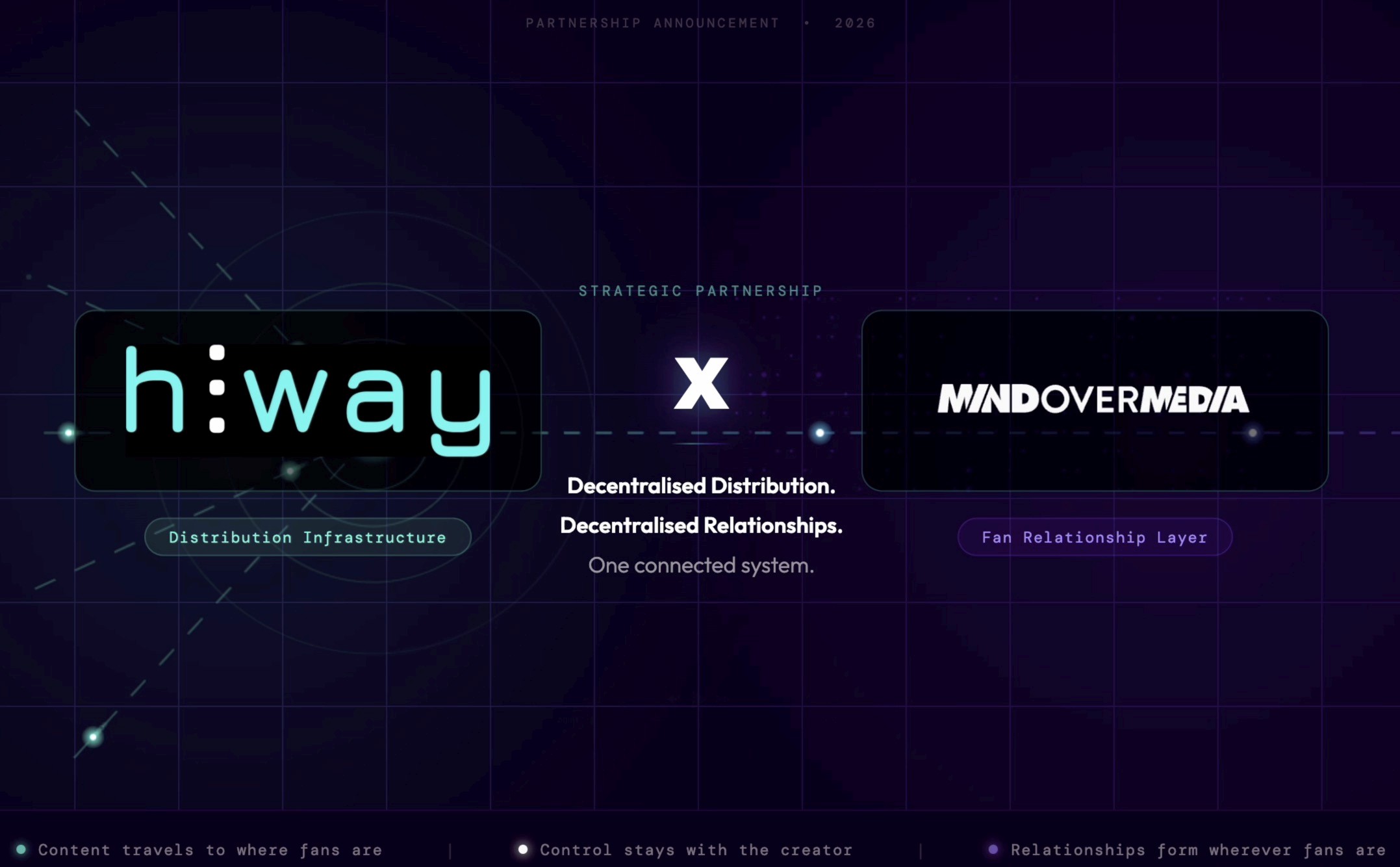 Hiway distributes content to where fans are. Mind Over Media manages the relationships that form when fans get there. Both systems are owned by the creator, governed by the creator, and built to return value to the creator.